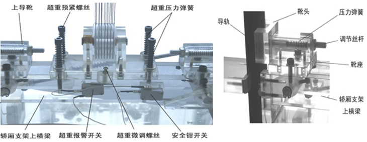 本公司設(shè)計(jì)的透明限速器,能調(diào)整到電梯模型實(shí)現(xiàn)限速器觸發(fā)安全鉗制動所需要的速度,真實(shí)演示電梯安全運(yùn)行保護(hù)功能(電梯模型轎廂運(yùn)行速度低于實(shí)際電梯的速度20-30倍)。由于實(shí)際電梯無法實(shí)現(xiàn)在故障狀態(tài)下的超速運(yùn)行,因此永遠(yuǎn)無法真實(shí)演示限速器觸發(fā)安全鉗制動的安全運(yùn)行保護(hù)功能,讓學(xué)生觀察了解安全運(yùn)行保護(hù)機(jī)電聯(lián)合控制的過程。