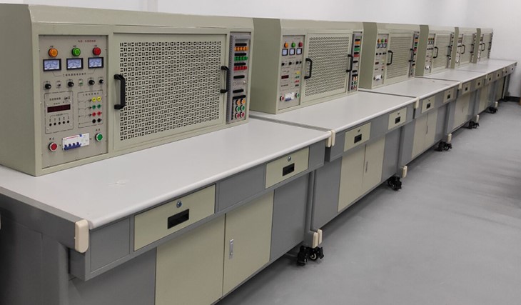 2、操作臺只需三相四線的交流電源即可投入使用,占地面積小,實訓器材集中在儲存柜內,易管理、規(guī)劃化程度高。