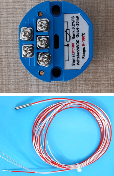 特點(diǎn):Pt100傳感器精度高,熱補(bǔ)償性較好,用于做標(biāo)準(zhǔn)校驗(yàn)用熱電阻。變送器部分供電DC24V,輸出4-20mA DC通信功能,用于測量加熱模塊內(nèi)部的溫度,是工業(yè)現(xiàn)場中常用的一溫度測量儀表。精度為0.5級(jí)