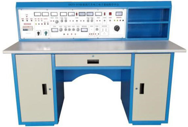新能源汽車電工電子基礎教學實驗臺具有較完善的安全保護措施,較齊全的功能。實驗操作桌中央配有通用電路插扳,電路板由進口ABS注塑而成,背面裝有壓鑄而成九孔成一組的銅片,表面布有九孔成一組相互聯(lián)通的插孔,創(chuàng)新實驗元件模塊在其上任意拼插成實驗電路。實驗元件制成透明創(chuàng)新模塊,直觀性好,盒蓋印有永不褪色元件符號,線條清晰美觀。盒體與盒蓋采用較科學的壓卡式結(jié)構(gòu),維修、更換元件拆裝方便。元器件放置在實驗操作桌下邊左右柜內(nèi),實驗時取存方便,大大提高了管理水平,規(guī)劃化程度,大大減輕了教師實驗準備工作。