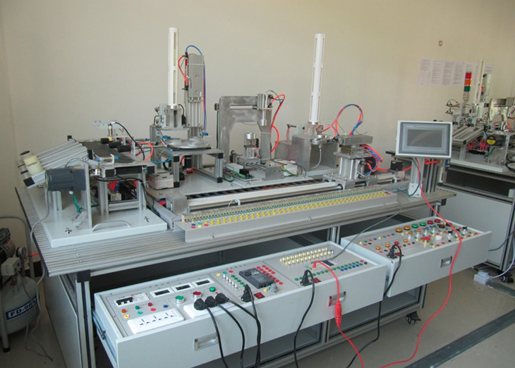 自動生產(chǎn)線實訓裝置由由鋁合金導軌式實訓臺、典型的機電一體化設備的機械部件、PLC模塊、變頻器模塊、按鈕模塊、電源模塊、模擬生產(chǎn)設備實訓模塊、接線端子排和各種傳感器、計算機等組成。整體結構采用開放式和拆裝式,實訓裝置用于機械部件組裝,可根據(jù)現(xiàn)有的機械部件組裝生產(chǎn)設備,也可添加機械部件組裝其他生產(chǎn)設備,使整個裝置能夠靈活的按教學或競賽要求組裝具有生產(chǎn)功能的機電一體化設備。模塊采用標準結構和抽屜式模塊放置架,互換性強;按具有生產(chǎn)性功能和整合學習功能的原則確定模塊內(nèi)容,使教學或競賽時可方便的選擇需要的模塊。設備需完全符合電工電子全國職業(yè)技能大賽所要求,同時還要求具有可拓展功能,可以組成更加大型的生產(chǎn)模擬系統(tǒng),以配合各個用戶學校不同層次,不同專業(yè)的教學及培訓要求。