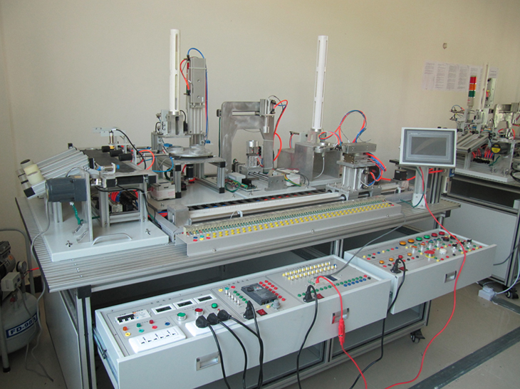 自動化綜合實訓裝置由由鋁合金導軌式實訓臺、典型的機電一體化設備的機械部件、PLC模塊、變頻器模塊、按鈕模塊、電源模塊、模擬生產設備實訓模塊、接線端子排和各種傳感器、計算機等組成。整體結構采用開放式和拆裝式,實訓裝置用于機械部件組裝,可根據(jù)現(xiàn)有的機械部件組裝生產設備,也可添加機械部件組裝其他生產設備,使整個裝置能夠靈活的按教學或競賽要求組裝具有生產功能的機電一體化設備。模塊采用標準結構和抽屜式模塊放置架,互換性強;按具有生產性功能和整合學習功能的原則確定模塊內容,使教學或競賽時可方便的選擇需要的模塊。設備需完全符合電工電子全國職業(yè)技能大賽所要求,同時還要求具有可拓展功能,可以組成更加大型的生產模擬系統(tǒng),以配合各個用戶學校不同層次,不同專業(yè)的教學及培訓要求。