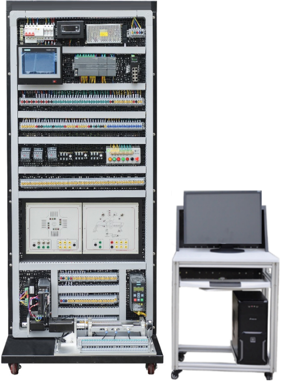 可編程控制器實訓設備、可編程控制器實訓工作臺以網孔架為基礎實訓單元,仿真企業(yè)真實環(huán)境,可開展PLC系統(tǒng)基礎模塊連接實訓。該工作臺采用單面實訓方式,實訓區(qū)主要由電源單元、PLC單元、PLC學習箱單元、基礎實訓單元、擴展實訓區(qū)(伺服控制小車運動實訓單元、步進電機單元和變頻器單元)六大部分組成。