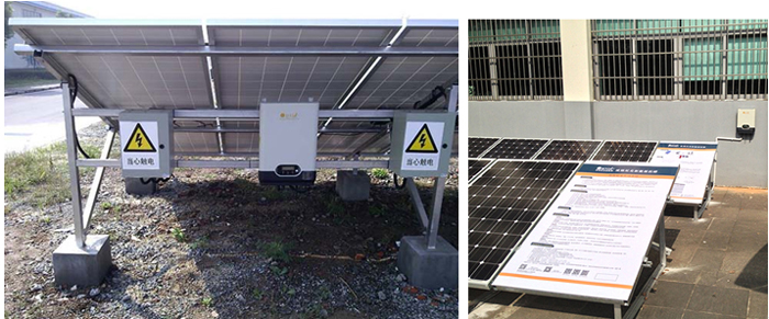分布式并網(wǎng)光伏電教學(xué)系統(tǒng),主要由光伏組件方陣及其支撐支架、直流匯流箱、防雷系統(tǒng)、并網(wǎng)逆變器、交流配電箱、監(jiān)控系統(tǒng)及其連接線纜等組成。