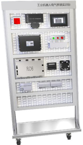 把工業(yè)級的機(jī)器人電氣柜的大部件拆散安裝在網(wǎng)孔架上,清晰體現(xiàn)機(jī)器人電氣連接原理。