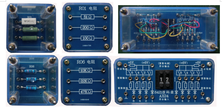 提供電工電子透明實(shí)訓(xùn)模塊,可以完成直流電路、模擬電子技術(shù)、數(shù)字電子技術(shù)和電子綜合應(yīng)用實(shí)訓(xùn)項(xiàng)目。實(shí)訓(xùn)模塊面板采用PCB板制作而成,器件和信號(hào)接口均已引至板上的專用插座,實(shí)訓(xùn)模塊有四個(gè)彈性插腳,與專用實(shí)訓(xùn)孔板配套使用。