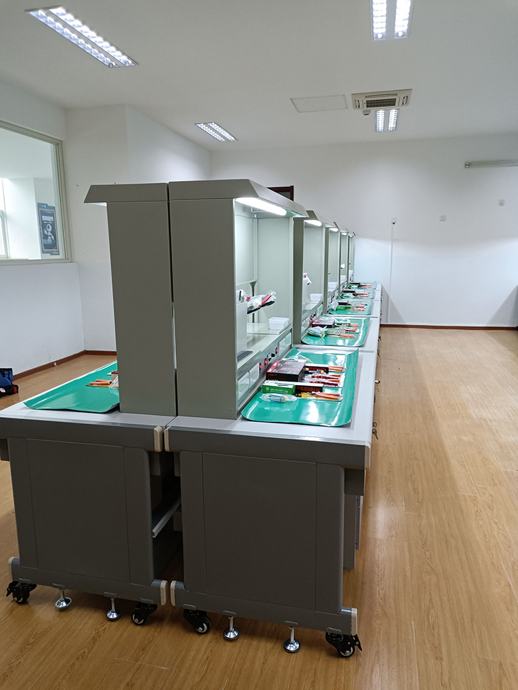3.經(jīng)濟(jì)性此實(shí)訓(xùn)臺為2人座,裝有照明日光燈、看板(用來夾資料)、儀表臺、插座,2個抽屜。學(xué)生在這里可以仿真生產(chǎn)過程(如:工藝流程的編制、線路板的焊接、線路板的調(diào)試、整體產(chǎn)品的組裝),組裝后的裝配線安全、可防靜電。