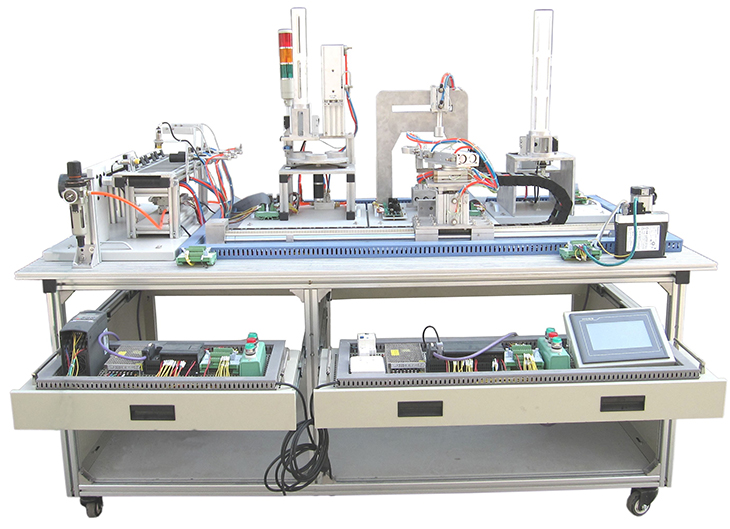光機(jī)電氣一體化控制實(shí)訓(xùn)平臺(tái)由由鋁合金導(dǎo)軌式實(shí)訓(xùn)臺(tái)、典型的機(jī)電一體化設(shè)備的機(jī)械部件、PLC模塊、變頻器模塊、按鈕模塊、電源模塊、模擬生產(chǎn)設(shè)備實(shí)訓(xùn)模塊、接線端子排和各種傳感器、計(jì)算機(jī)等組成。整體結(jié)構(gòu)采用開放式和拆裝式,實(shí)訓(xùn)裝置用于機(jī)械部件組裝,可根據(jù)現(xiàn)有的機(jī)械部件組裝生產(chǎn)設(shè)備,也可添加機(jī)械部件組裝其他生產(chǎn)設(shè)備,使整個(gè)裝置能夠靈活的按教學(xué)或競(jìng)賽要求組裝具有生產(chǎn)功能的機(jī)電一體化設(shè)備。模塊采用標(biāo)準(zhǔn)結(jié)構(gòu)和抽屜式模塊放置架,互換性強(qiáng);按具有生產(chǎn)性功能和整合學(xué)習(xí)功能的原則確定模塊內(nèi)容,使教學(xué)或競(jìng)賽時(shí)可方便的選擇需要的模塊。設(shè)備需完全符合電工電子全國(guó)職業(yè)技能大賽所要求,同時(shí)還要求具有可拓展功能,可以組成更加大型的生產(chǎn)模擬系統(tǒng),以配合各個(gè)用戶學(xué)校不同層次,不同專業(yè)的教學(xué)及培訓(xùn)要求。