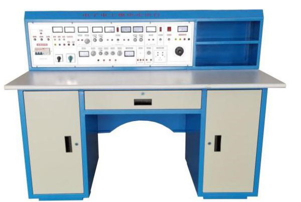 采用鐵質雙層亞光噴塑結構,右邊是儀器存放格。桌子中間是抽屜,放置常用工具,桌子下部左右是元件儲存柜,放置實驗元器件。桌中央配置通用九孔電路板(尺寸:35×30cm ),根據(jù)實驗電路在其上任意拼插元件盒成實驗電路,元件盒盒體透明直觀,內(nèi)裝元件一目了然,盒蓋印有永不褪色元件符號,盒蓋與盒體結合采用較科學的壓卡式結構,維修拆裝方便。每張臺桌配有一粒膠皮板,保護通用底板與桌面(如需在桌上放置工具、焊接等)。
