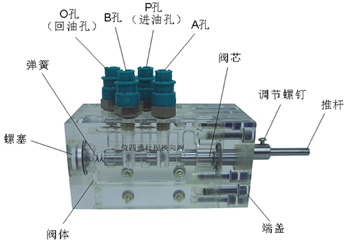 2、溢流閥結(jié)構(gòu)上參考了國(guó)產(chǎn)P-63B型低壓直動(dòng)式溢流閥,其閥體閥蓋、鎖緊螺母、調(diào)節(jié)螺母、螺塞等采用了進(jìn)口透明有機(jī)玻璃材料精制而成,閥芯、調(diào)節(jié)桿采用了45#中碳鋼材料。并配合彈簧,油接頭,密封圈等標(biāo)準(zhǔn)件裝配而成,通過(guò)它可明確地觀察到閥芯、彈簧、油孔等結(jié)構(gòu)及其運(yùn)行過(guò)程,具有形象逼真,性能可靠等優(yōu)點(diǎn)。它即可作為教學(xué)模型,也可以作為液壓實(shí)驗(yàn)元件進(jìn)行實(shí)驗(yàn)演示。