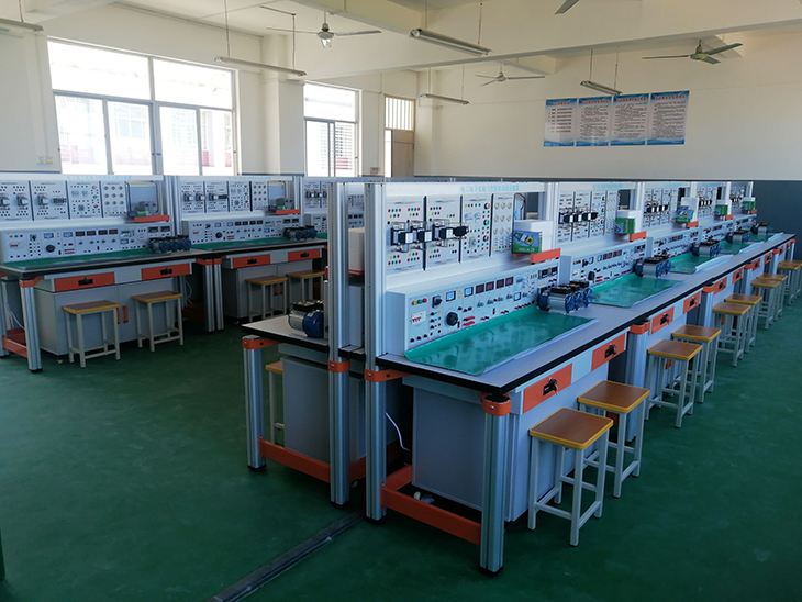 電工電子技能綜合實訓裝置由實驗主機箱、儀器架、實訓桌、移動矮柜、電工電子實訓套件、學生凳等組成。實驗裝置支架與實驗桌可組合、可拆裝。支架與桌腳一體,鋁合金結(jié)構(gòu)。