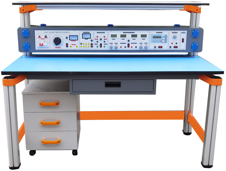 實驗桌規(guī)格為1500mm(長)*700mm(寬)*1150mm(高),設有一個抽屜。實驗桌主體結構全部采用高性能表面氧化的鋁型材及一次成型鋁壓鑄框架連接構件,連接構件采用壓鑄成型工藝(非焊接工藝),經機加工、拋丸、噴砂,表面靜電噴涂工藝,安裝方便、快捷,用戶可自行DIY組裝。桌體立柱采用工業(yè)鋁型材成型工藝,表面氧化處理,截面尺寸:70mm×70mm,四面帶槽,槽寬約8mm,端部裝有注塑成型配套塑料堵頭。桌面采用25mmE1級三聚氰胺飾面板,桌面板下設支撐框架,承受力不少于300kg。配備儲存柜,存放元件及工具,儲存柜底部4只高強度萬向可制動PU腳輪,方便移動。實訓裝置整體簡約不簡單,高端大氣,符合現代化產品審美和發(fā)展趨勢。