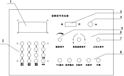 3)、電源開關(guān),控制函數(shù)信號(hào)發(fā)生器的工作電源。