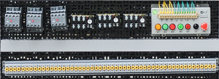 組成:繼電器、交流接觸器、熱繼電器、按鈕指示燈、導(dǎo)軌、線槽、雙層端子;