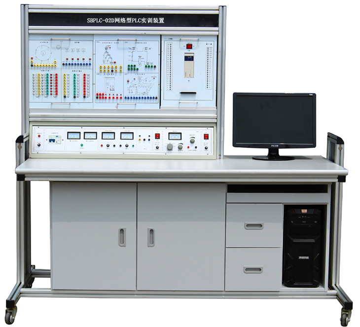 SBPLC-02D網(wǎng)絡(luò)型PLC實訓(xùn)裝置,PLC控制+變頻+觸摸屏+步進(jìn)+伺服