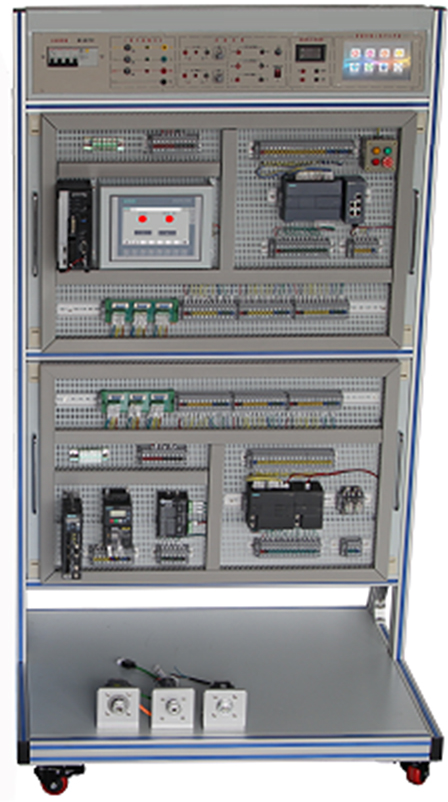提供實訓(xùn)所需的三相交流380V、單相220V電源接口,具有啟動、停止、急停系統(tǒng),設(shè)有漏電保護、電源指示、過流保護等功能。