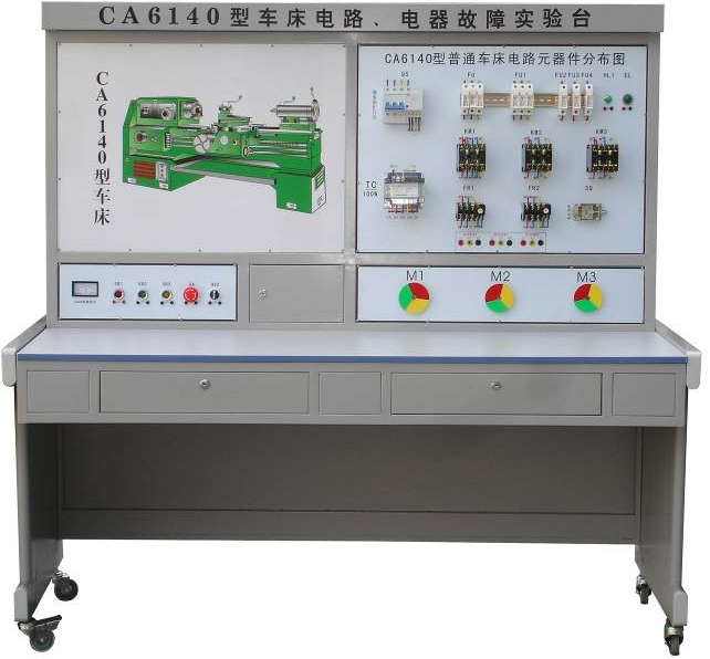 C6140普通車床電氣技能實訓(xùn)考核裝置,是為各大、中專院校、職業(yè)學(xué)校的電氣、自動化及相關(guān)專業(yè)、社會電工培訓(xùn)、各縣市維修電工鑒定所(站)等單位電氣控制內(nèi)容的教學(xué)、考核而研制的,可用于課堂演示、機(jī)床電氣控制原理性操作及實驗實習(xí)。裝置人為隱蔽地設(shè)置了幾十項電路故障,學(xué)生借助原理分析,全方位真實的機(jī)床電氣故障排除訓(xùn)練,是進(jìn)行技能培訓(xùn)考核的理想設(shè)備,教學(xué)效果顯著。