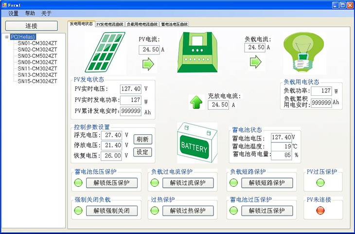 個部分組成裝置采用串聯(lián)式PWM充電控制方式,使充電回路的電壓損失較原二極管充電方式降低一半,充電效率較非PWM高3-6%;過放恢復(fù)的提升充電,正常的直充,浮充自動控制方式有利于提高蓄電池壽命。多種保護功能,包括蓄電池反接、蓄電池過、欠壓保護、太陽能電池組件短路保護,具有自動恢的輸出過流保護功能,輸出短路保護功能。