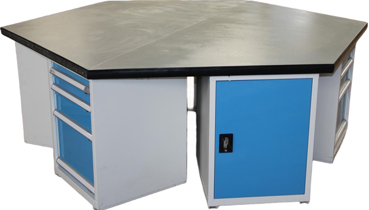 六角鉗工臺(tái)的工位長為1.2米,每臺(tái)由兩個(gè)梯形鉗工臺(tái)拼成,共有18實(shí)訓(xùn)工位。 |
