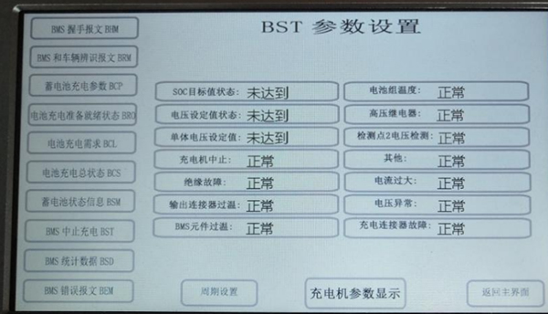 并可將數(shù)據(jù)同步至 BCS 報(bào)文里面。帶有上位機(jī)操作軟件,10寸觸摸屏操作界面,實(shí)現(xiàn)對充電樁的多種測試和分析方式。符合國標(biāo)GB.T27930-2015《電動(dòng)汽車非車載傳導(dǎo)式充電機(jī)與電池管理系統(tǒng)之間的通信協(xié)議》通信協(xié)議,兼容國標(biāo)GB.T27930-2011通信協(xié)議。