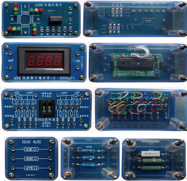 (透明電子元件模塊示例圖,共9塊板,140多只透明有機(jī)塑料封閉元件盒)