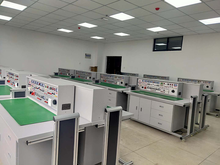 3、示教控制臺:1臺示教控制臺,分別控制12臺學(xué)生臺的電源,通用電路板演示屏立在實(shí)驗(yàn)臺上,尺寸150×70cm,用于講解、演示。