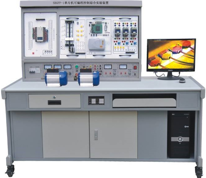 單片機(jī)可編程控制綜合實(shí)驗(yàn)裝置,PLC可編程控制器、單片機(jī)開(kāi)發(fā)應(yīng)用及電氣控制綜合實(shí)訓(xùn)裝置,PLC部分集可編程邏輯控制器、通信編輯器、編程軟件、工控組態(tài)軟件、仿真教學(xué)軟件、模擬控制實(shí)訓(xùn)掛箱、實(shí)物等于一體,可直觀地進(jìn)行PLC的基本指令訓(xùn)練,多個(gè)應(yīng)用廣泛的PLC實(shí)際應(yīng)用模擬實(shí)驗(yàn)和實(shí)物控制實(shí)訓(xùn),也為高層次的設(shè)計(jì)開(kāi)發(fā)實(shí)驗(yàn)實(shí)訓(xùn)提供良好的條件。為了結(jié)合教學(xué)要求,設(shè)計(jì)過(guò)程中參考了國(guó)內(nèi)多種教材,從中精選出最具典型性的實(shí)訓(xùn)實(shí)驗(yàn)項(xiàng)目,配備三相鼠籠異步電機(jī)及繼電器,能完成多個(gè)電氣控制項(xiàng)目訓(xùn)練。