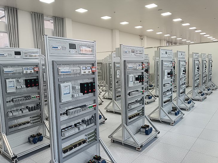 電工技術實訓平臺、電工實訓考核裝置采用開放性設計理念,包含了PLC控制技術、變頻調速技術、人機界面技術、電氣控制等考核內容。培養(yǎng)具有實踐能力、創(chuàng)新能力的高素質技術技能專門人才。