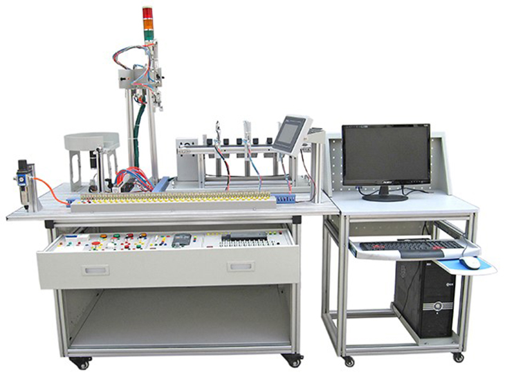光機電一體化實訓(xùn)考核裝置、光機電一體化實訓(xùn)考核設(shè)備是一種最為典型的機電一體化產(chǎn)品,是為職業(yè)院校、職業(yè)教育培訓(xùn)機構(gòu)而研制的,適合機電一體化、電氣自動化等相關(guān)專業(yè)的教學和培訓(xùn)。光機電一體化實訓(xùn)考核裝置它在接近工業(yè)生產(chǎn)制造現(xiàn)場基礎(chǔ)上又針對教學及實訓(xùn)目的進行了專門設(shè)計,強化了機電一體化的安裝與調(diào)試能力。光機電一體化實訓(xùn)考核裝置由導(dǎo)軌式型材實訓(xùn)臺、機電一體化設(shè)備部件、電源模塊、按鈕模塊、PLC模塊、變頻器模塊、交流電機模塊、步進電機及驅(qū)動器模塊、模擬生產(chǎn)設(shè)備實訓(xùn)單元(包含上料機構(gòu)、搬運機械手、皮帶輸送線、物件分揀等)和各種傳感器等組成。采用開放式和拆裝式結(jié)構(gòu)設(shè)計,可根據(jù)現(xiàn)有的機械部件組裝生產(chǎn)設(shè)備,使整個裝置能夠靈活的按實訓(xùn)教學需要組裝機電一體化設(shè)備。裝置采用工業(yè)標準結(jié)構(gòu)設(shè)計及抽屜式模塊放置架,組合方便?刂茖ο缶捎玫湫蜋C電設(shè)備部件,接近工業(yè)現(xiàn)場環(huán)境,滿足實訓(xùn)教學或技能競賽需求。