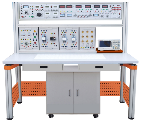 裝置由主機(jī)箱、實(shí)驗(yàn)桌、實(shí)訓(xùn)屏、實(shí)訓(xùn)掛箱、移動(dòng)矮柜、示波器架、學(xué)生凳等組成。實(shí)訓(xùn)裝置支架與實(shí)訓(xùn)桌可組合、可拆裝。支架與桌腳一體,鋁合金結(jié)構(gòu),實(shí)訓(xùn)掛箱、各實(shí)驗(yàn)?zāi)K可根據(jù)實(shí)驗(yàn)需求自由組合放置。
