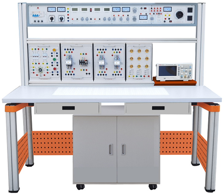 裝置由主機(jī)箱、實(shí)驗(yàn)桌、實(shí)訓(xùn)掛箱、獨(dú)立封裝實(shí)訓(xùn)電路模塊、移動(dòng)矮柜、示波器架、學(xué)生凳等組成。實(shí)訓(xùn)裝置支架與實(shí)訓(xùn)桌可組合、可拆裝。支架與桌腳一體,鋁合金結(jié)構(gòu),實(shí)訓(xùn)掛箱、各實(shí)驗(yàn)?zāi)K可根據(jù)實(shí)驗(yàn)需求自由組合放置。