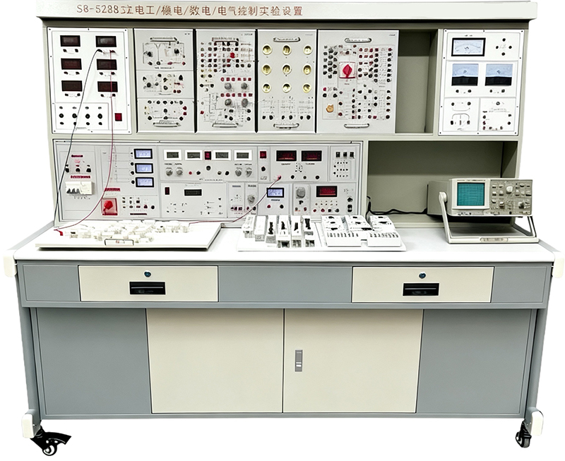 電工電子考核實訓設備,立式電工電子實訓裝置,電工電子實訓臺是能完成“電工學、電工原理、電子技術等課程實驗,又能完成“電工技能訓練、電工實訓、電力拖動控制線路與技能訓練、電子技能訓練等課目的實訓,還可擴展PLC可編程控制、變頻技術等課程實驗實訓。實驗部分在九孔萬能通用實驗板上完成,可完成交直流、振蕩、磁路電路、運算放大器、整流電路、交直流放大電路、數(shù)字邏輯電路等實驗項目,實驗項目接近工業(yè)現(xiàn)場,動手能力強,實訓方法靈活。