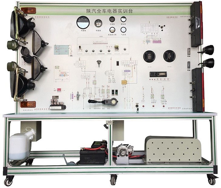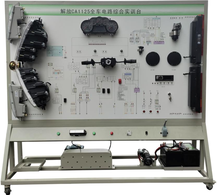 汽車仿真電路實(shí)訓(xùn)設(shè)備,汽車電路實(shí)訓(xùn)設(shè)備臺,汽車電器與電子實(shí)訓(xùn)室按照標(biāo)準(zhǔn)汽車電氣線路設(shè)計(jì)而成,外型美觀,操作方便,透明直觀。全車電線束、儀表盤、各種開關(guān)、前后燈光分電器、點(diǎn)火線圈、調(diào)節(jié)器、繼電器、中央線路板,中央控制器、節(jié)氣門組件,均用實(shí)物裝成,各缸點(diǎn)火清楚可見,各缸噴油燈光顯示、轉(zhuǎn)速可快慢調(diào)節(jié),自動(dòng)充電,電噴、ABS各傳感器和執(zhí)行器等專業(yè)的專項(xiàng)職業(yè)技能訓(xùn)練,提高學(xué)生對汽車電器電路的初步認(rèn)識,了解整車電路起到更直觀更深入的教學(xué)目的,是各汽車學(xué)校對電路電器理論和維修實(shí)訓(xùn)的最理想的教學(xué)設(shè)備。