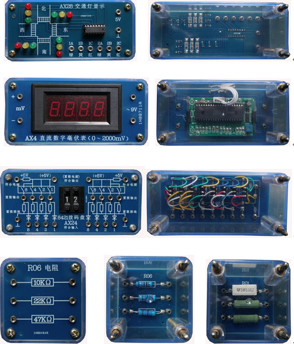 電工技能實(shí)訓(xùn)通過安全用電、常用工具及儀表的使用、電工綜合技能訓(xùn)練、電動機(jī)的安裝、維護(hù)與故障處理、電動機(jī)控制線路的安裝工藝、調(diào)試維修、常用生產(chǎn)機(jī)械電氣控制線路的安裝連線,故障分析與處理,基于PLC及變頻器的電機(jī)基本控制線路以及常用機(jī)床的控制,可達(dá)到勞動及社會保障職業(yè)技能鑒定中級以上水平。電子技能實(shí)訓(xùn)改革傳統(tǒng)實(shí)驗(yàn)室實(shí)訓(xùn)教學(xué)模式,通過基本操作技能和三十幾類實(shí)用新型電路的制作、調(diào)試,使學(xué)生掌握電子產(chǎn)品制作調(diào)試,學(xué)會閱讀電路原理圖和PCB圖,熟悉電子元器件的選擇、測試,掌握焊接和電路組裝工藝技能(配備三十幾套特制實(shí)訓(xùn)電路板和相應(yīng)電路元器件),并能處理安裝調(diào)試過程中出現(xiàn)的問題。實(shí)訓(xùn)電路中涵蓋開關(guān)、音頻、信號發(fā)生、計(jì)數(shù)、譯碼、顯示、測量、控制等實(shí)訓(xùn)內(nèi)容。實(shí)訓(xùn)臺上增加了電子創(chuàng)新透明模塊與九孔萬能電路插板,可開展電子創(chuàng)新項(xiàng)目實(shí)訓(xùn),實(shí)訓(xùn)項(xiàng)目豐富。