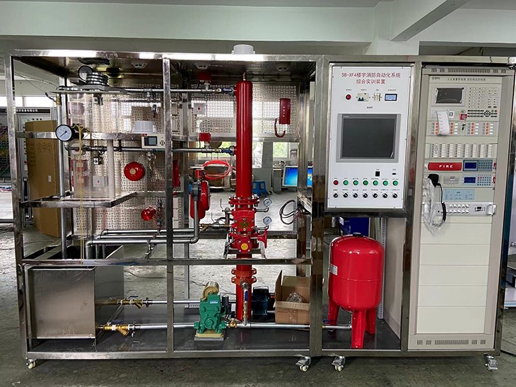 模型框架和水箱等主要部件全部使用不銹鋼器件,保證不生銹、不易老化,模擬兩層大樓噴淋滅火系統(tǒng);模型系統(tǒng)主要由噴淋水泵、氣壓罐、濕式報(bào)警閥、水力警鈴、延時(shí)器、壓力開(kāi)關(guān)、水流指示器、封閉式噴頭、試驗(yàn)閥、火災(zāi)探測(cè)器、火災(zāi)報(bào)警器等典型噴水滅火設(shè)備構(gòu)成,能生動(dòng)模擬大樓內(nèi)水滅火系統(tǒng)的典型結(jié)構(gòu)。
