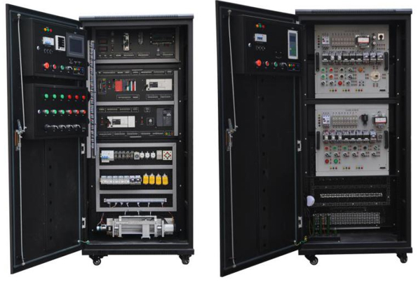 1.本裝置是由控制柜、受控對象等組成一個完整系統(tǒng),具有占地面積小、操作方便、可移動、內(nèi)部安裝有照明設(shè)施、操作面板,各控制點和通訊接口均引出到專用的接線板上,使實訓(xùn)更加便捷。