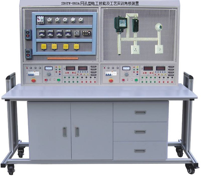 電工工藝(維修電工)試驗(yàn)臺,可以提供電工基本技能訓(xùn)練和相應(yīng)的拓展訓(xùn)練,可以開展電工基本工具儀表的使用,三相異步電機(jī)控制電路接線和室內(nèi)照明電路安裝接線等實(shí)訓(xùn)項目。