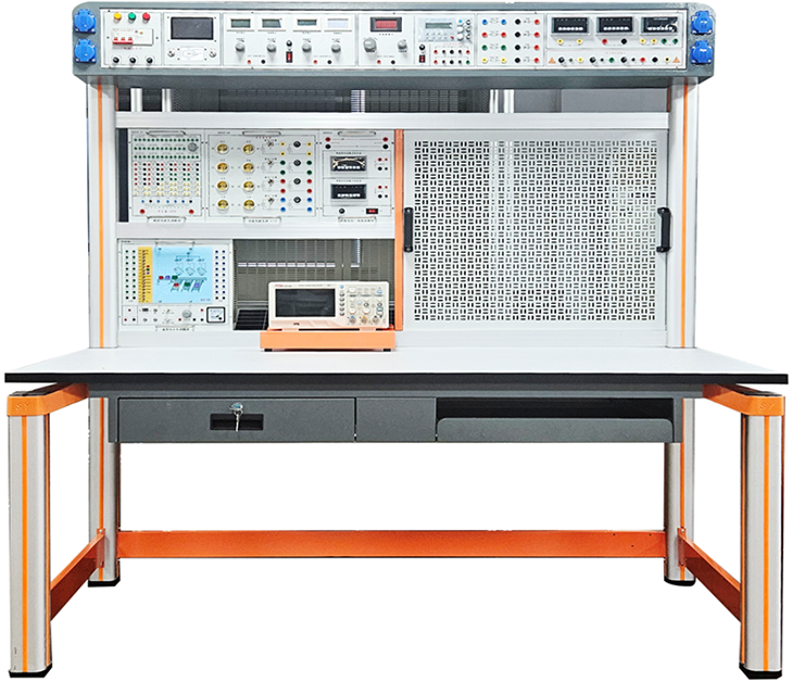 實(shí)驗(yàn)桌后面二支桌腳向上延伸,配上特制拉模成型的帶滑槽橫梁鋁型材組成實(shí)訓(xùn)屏,實(shí)訓(xùn)時(shí)左邊放置電氣實(shí)訓(xùn)掛箱(2層)及示波器支架,右邊裝置網(wǎng)孔板等,實(shí)訓(xùn)掛箱、網(wǎng)孔板在實(shí)訓(xùn)屏上實(shí)訓(xùn)時(shí)上下方便,左右移位自如。實(shí)訓(xùn)屏頂部安裝主機(jī)箱,實(shí)訓(xùn)屏底部安裝實(shí)驗(yàn)儀器工作電源箱。