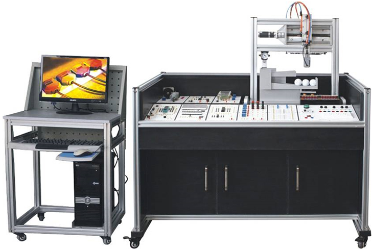 單片機(jī)技術(shù)應(yīng)用實(shí)訓(xùn)考核裝置,單片機(jī)功能控制實(shí)訓(xùn)考核平臺(tái)采用烤漆鋼板制作的臺(tái)式結(jié)構(gòu)。實(shí)訓(xùn)臺(tái)的抽屜柜用于存放實(shí)訓(xùn)模塊,抽屜柜與臺(tái)面之間布置實(shí)訓(xùn)模塊安裝支架,最上一層是工作臺(tái)臺(tái)面。用于技能競(jìng)賽時(shí)在臺(tái)面上放置設(shè)備安裝底板,在底板上安裝試題擬定的單片機(jī)控制裝置需要的模塊,連接控制電路,編寫(xiě)的控制程序輸入單片機(jī)后,按下運(yùn)行指令開(kāi)關(guān),單片機(jī)控制裝置就按程序運(yùn)行。放置在單片機(jī)實(shí)訓(xùn)室中,這就是一張實(shí)訓(xùn)臺(tái)。當(dāng)講解理論或?qū)嵱?xùn)項(xiàng)目中的相關(guān)知識(shí)時(shí),可以當(dāng)做課桌;當(dāng)需要進(jìn)行實(shí)際操作時(shí),將臺(tái)面打開(kāi),就露出放置在安裝支架上的模塊,在需要的實(shí)訓(xùn)模塊間按實(shí)訓(xùn)要求連接電路,編寫(xiě)控制程序,就可以按照設(shè)計(jì)的實(shí)訓(xùn)項(xiàng)目進(jìn)行單片機(jī)技術(shù)的教學(xué)了,同時(shí)還能完成智能物料搬運(yùn)裝置的提升實(shí)訓(xùn)。