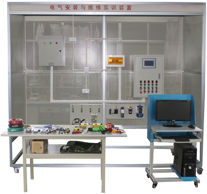 電氣安裝與維修調(diào)試實(shí)訓(xùn)平臺可進(jìn)行電工安裝。如橋架安裝、PVC管安裝、吊燈、白熾燈座、日光燈、開關(guān)、插座、配電箱、控制箱等,裝置還包含有交流異步電動(dòng)機(jī)、直流電動(dòng)機(jī)、步進(jìn)電機(jī)、伺服電機(jī)、溫度控制器、電偶、PLC、變頻器觸摸屏、消防聯(lián)動(dòng)、防盜報(bào)警、視頻監(jiān)控等控制與受控對象。該系統(tǒng)每個(gè)操作組配套一可移動(dòng)式工具車和元件柜,便于對元件的保管和安裝施工。從根本上解決了學(xué)校在普通墻面上進(jìn)行的安裝培訓(xùn)的使用不方便、實(shí)訓(xùn)范圍窄的問題。