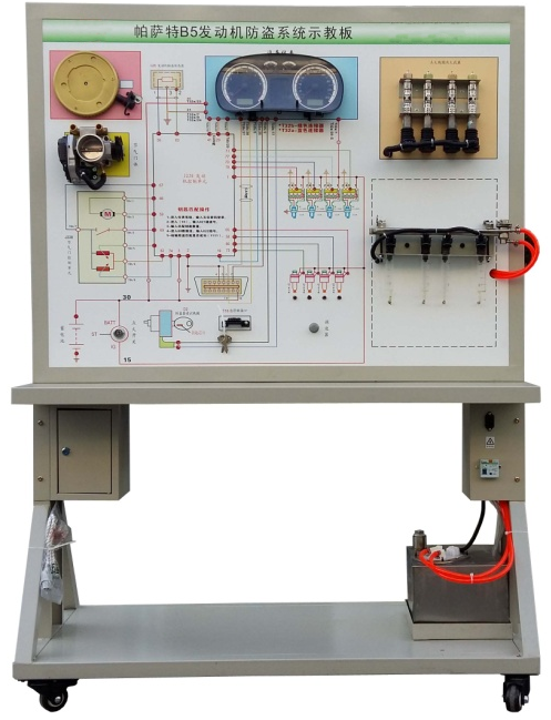 該設(shè)備采用全新大眾B5汽車發(fā)動(dòng)機(jī)防盜系統(tǒng)實(shí)物為基礎(chǔ),充分展示發(fā)動(dòng)機(jī)防盜系統(tǒng)的組成結(jié)構(gòu)和工作過程。