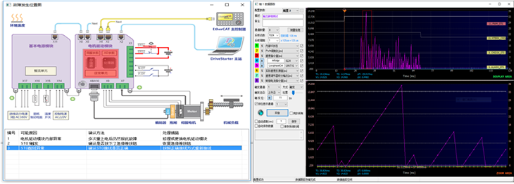 把工業(yè)機(jī)器人的電氣柜各大部件拆散安裝在網(wǎng)孔架上,清晰體現(xiàn)機(jī)器人電氣連接原理。主要部件有:電源、濾波器、機(jī)器人運(yùn)動(dòng)控制器、伺服驅(qū)動(dòng)器、示教器、擴(kuò)展IO。同進(jìn)時(shí)還有一個(gè)故障設(shè)置模塊,通過人機(jī)界面操作可以設(shè)置典型的故障,并通過人機(jī)界面設(shè)置解除故障。