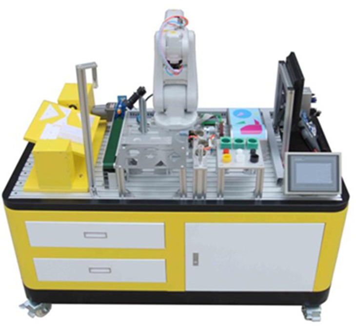 工業(yè)機器人實訓平臺,以關節(jié)型六軸串聯(lián)工業(yè)機器人為核心,在操作平臺的四周合理分布有多種不同工藝應用的實訓模塊,包含了搬運碼垛工藝、分揀工藝、拋光打磨工藝、裝配工藝、焊接工藝等工業(yè)機器人最典型應用,不僅滿足了職業(yè)院校不同專業(yè)學生針對工業(yè)機器人的操作和編程的教學需求,完全來源于工業(yè)應用現(xiàn)場的特征也使該工作站更加適合于作為職業(yè)技能競賽平臺。