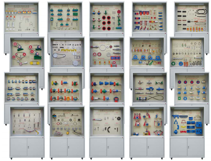 該套共分二十個柜400余種物零件模型。柜體采用SPCC冷扎板焊成,堅固美觀,表面采用中溫磷化防銹漆、平光漆,靜電噴涂。模型材料采用進口有機板制造,板面附有必要的圖表和文字說明,演示形象逼真,運行可靠,制作工藝美觀,使用本陳列柜可提高教學效果,節(jié)約學時是一套現(xiàn)代化機械課程教學應(yīng)用實驗室設(shè)備。