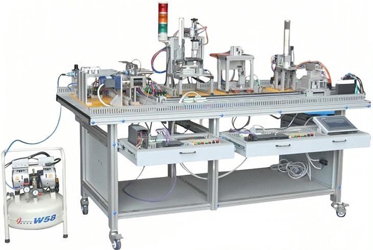 自動生產(chǎn)線實訓(xùn)考核裝置適用于《光電一體化》課程及《電氣自動化》等實訓(xùn)課程的教學(xué),以滿足本專業(yè)培養(yǎng)目標的要求,提高學(xué)生光機電氣一體化的安裝與調(diào)試能力。自動生產(chǎn)線實訓(xùn)考核裝置由由鋁合金導(dǎo)軌式實訓(xùn)臺、典型的機電一體化設(shè)備的機械部件、PLC模塊、變頻器模塊、按鈕模塊、電源模塊、模擬生產(chǎn)設(shè)備實訓(xùn)模塊、接線端子排和各種傳感器、計算機等組成。整體結(jié)構(gòu)采用開放式和拆裝式,實訓(xùn)裝置用于機械部件組裝,可根據(jù)現(xiàn)有的機械部件組裝生產(chǎn)設(shè)備,也可添加機械部件組裝其他生產(chǎn)設(shè)備,使整個裝置能夠靈活的按教學(xué)或競賽要求組裝具有生產(chǎn)功能的機電一體化設(shè)備。模塊采用標準結(jié)構(gòu)和抽屜式模塊放置架,互換性強;按具有生產(chǎn)性功能和整合學(xué)習(xí)功能的原則確定模塊內(nèi)容,使教學(xué)或競賽時可方便的選擇需要的模塊。設(shè)備需完全符合電工電子全國職業(yè)技能大賽所要求,同時還要求具有可拓展功能,可以組成更加大型的生產(chǎn)模擬系統(tǒng),以配合各個用戶學(xué)校不同層次,不同專業(yè)的教學(xué)及培訓(xùn)要求。