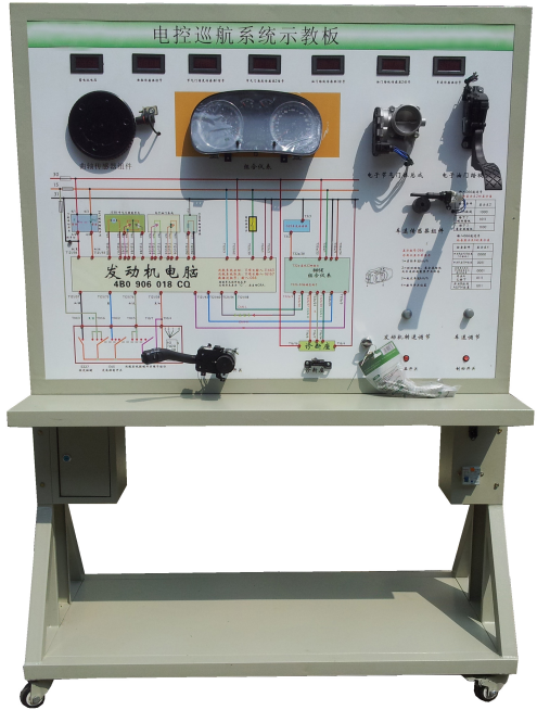 操縱油門踏板位置傳感器可實(shí)現(xiàn)節(jié)氣門開度的調(diào),可真實(shí)展示電子節(jié)氣門的工作原理和工作過程;操縱巡航控制開關(guān)和車速信號(hào),設(shè)定巡航狀態(tài),引擎控制單元可對(duì)節(jié)氣門開度進(jìn)行調(diào)節(jié),真實(shí)演示汽車電子巡航系統(tǒng)的工作過程和工作原理。