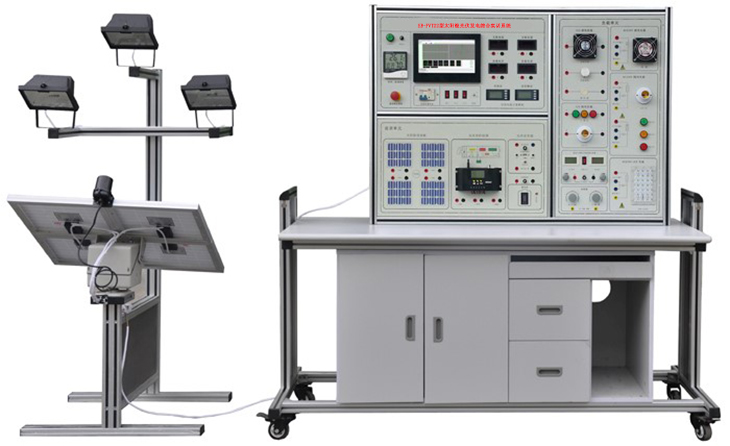 太陽能光伏發(fā)電綜合實訓(xùn)裝置主要提供于職高、大學(xué)、研究生、企業(yè)技工以太陽能發(fā)電為主課題的研究和培訓(xùn)。設(shè)備由模擬太陽燈、太陽能電池板、二維跟蹤機構(gòu)、光伏控制器、儲能蓄電池、負(fù)載、儀表及工控電腦等組成。