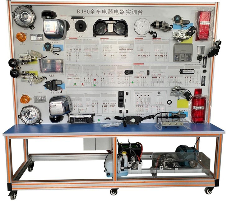 北汽BJ80全車電氣電路綜合實(shí)習(xí)臺(tái)采用全新BJ80 2.3T整車電器實(shí)物為基礎(chǔ),充分展示汽車發(fā)動(dòng)機(jī)防盜系統(tǒng)、儀表系統(tǒng)、燈光系統(tǒng)、雨刮系統(tǒng)、喇叭系統(tǒng)、點(diǎn)火系統(tǒng)、電動(dòng)車窗系統(tǒng)、電動(dòng)門鎖、音響系統(tǒng)、起動(dòng)系統(tǒng)和充電系統(tǒng)等汽車電器各系統(tǒng)的組成結(jié)構(gòu)和工作過程。