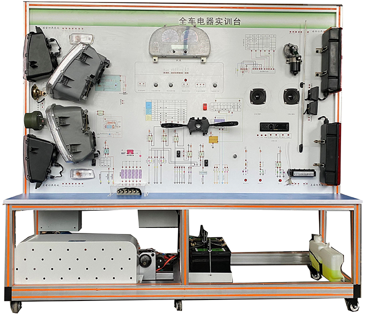 2.設備面板采用耐創(chuàng)擊、耐污染、防火、防潮的高級鋁塑板,表面經(jīng)特殊工藝噴涂底漆處理;面板打印有永不褪色的彩色電路圖;學員可直觀對照電路圖和實物,認識和分析汽車整車電器各系統(tǒng)的工作原理。