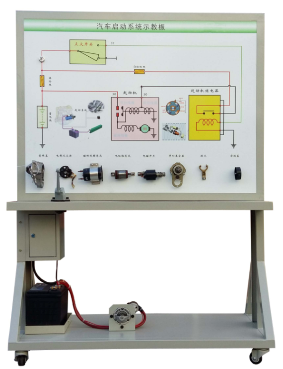 4.示教板面板上安裝有起動(dòng)機(jī)總成分解部件,可直觀認(rèn)識(shí)起動(dòng)機(jī)的組成結(jié)構(gòu)。